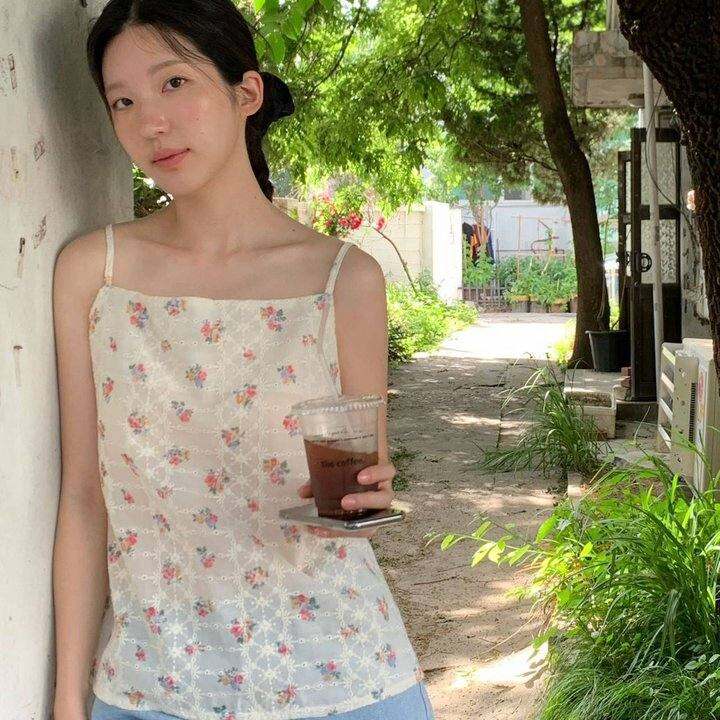 韩国代购 fure A26041303“编织时光”时尚蕾丝碎花吊带