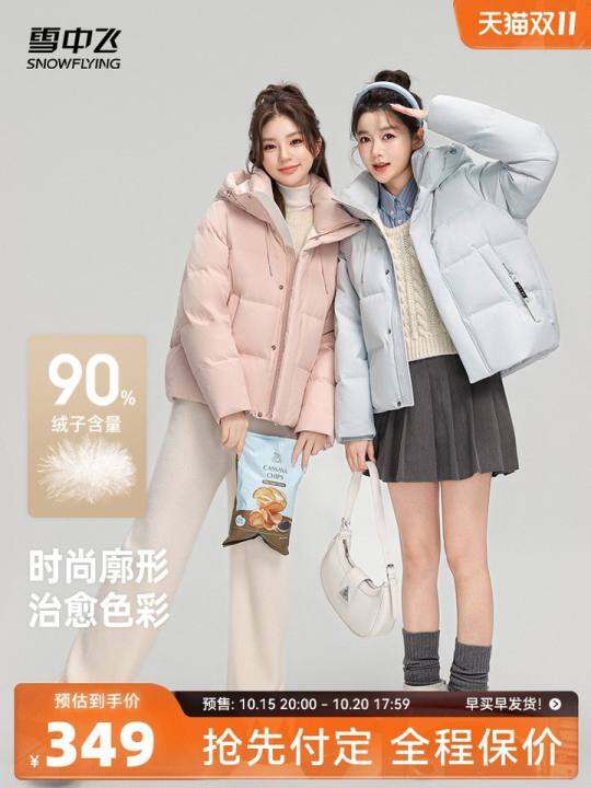 雪中飞2025冬新款短款马卡龙色连帽面包服羽绒服廓形显瘦保暖