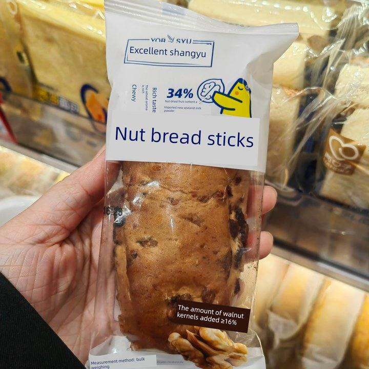 坚果棒是这个,好想来一个 2.5~2.3 一个,重量略有不同,每天都有碰一碰的红包,不知道买什么消耗小红包的时候就去逛逛买一袋面包当早饭或者晚饭