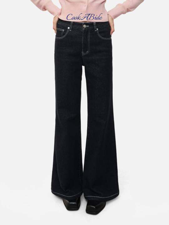 CookABide 宽松微喇水洗蓝黑阔腿牛仔裤