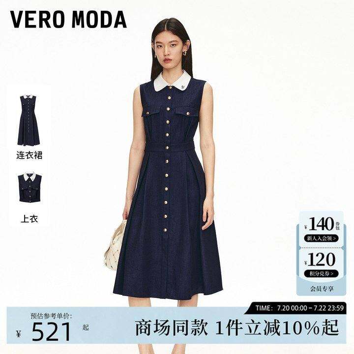 Vero ModA洋装2025夏季新款撞色翻领高腰线 线收褶中长裙3252SZ003