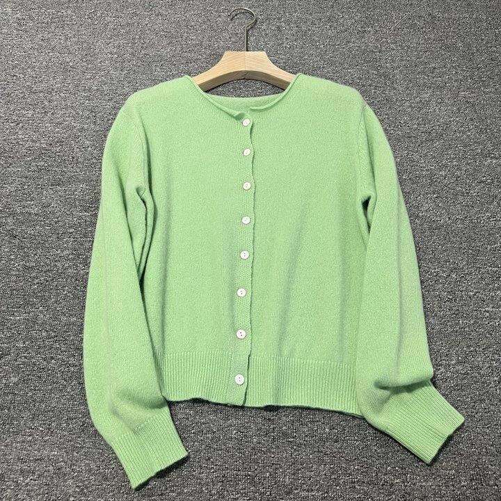 韩版秋冬新款100羊毛圆领针织开衫女外套上衣韩系