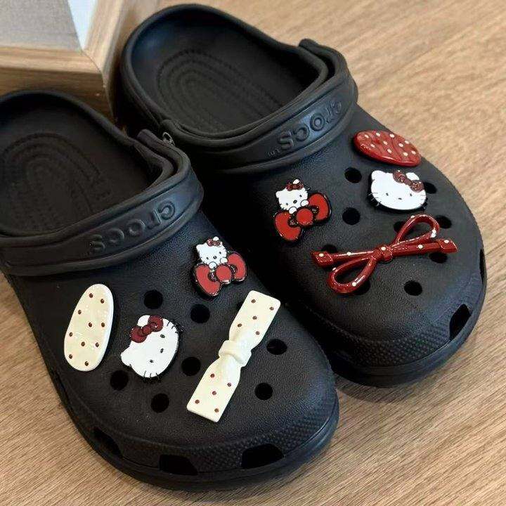 可爱安可拉红kitty猫咪洞洞鞋鞋花卡通鞋扣拖鞋面可拆卸装饰配件