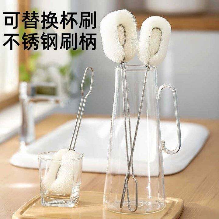 海绵不锈钢杯刷奶瓶刷清洁刷水杯清洗长柄海绵替换头洗杯子通用刷