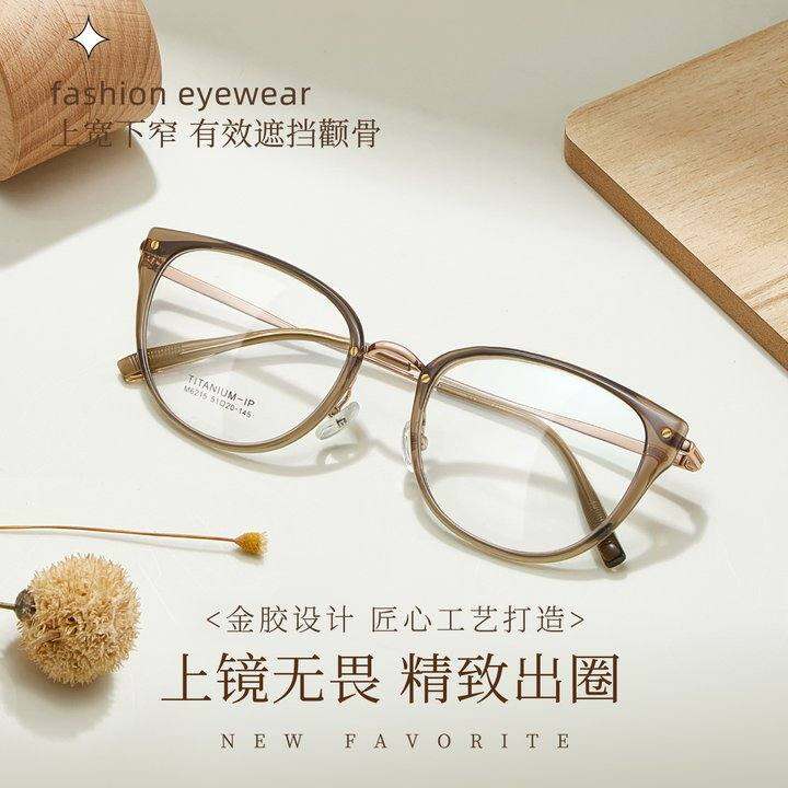 超轻纯钛猫眼素颜眼镜高级感配近视防蓝光散光度数眼镜框架女黑框