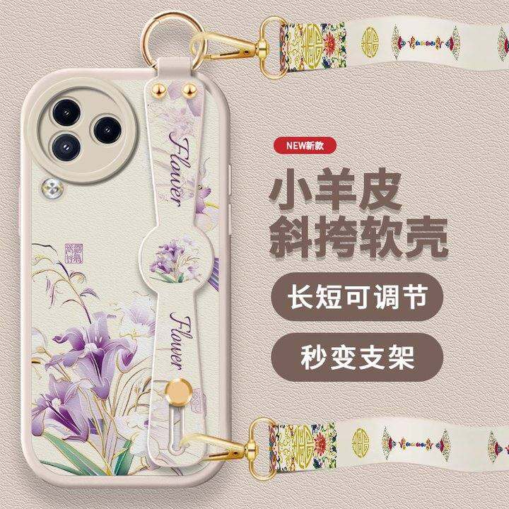 古画紫花适用小米Civi3手机壳Civi2新款Civi1s小羊皮Civi腕带曲面屏支架全包防摔女高级可爱卡通保护软套