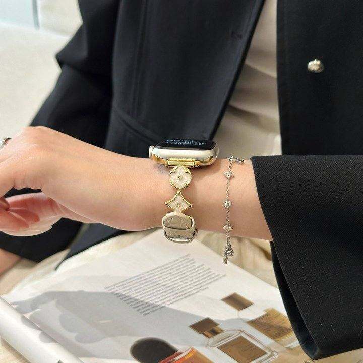 鎏金四叶草钻鳄鱼纹真皮表带适用s10代applewatch9苹果手表8765se