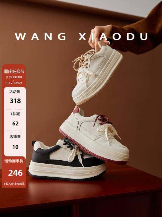 原创【王小毒】彩虹底色●5cm厚底板鞋女撞色鸳鸯鞋带增高小白鞋