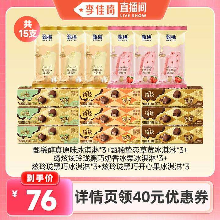 【李佳琦直播间】伊利冰淇淋绮炫炫玲珑甄稀支棒多口味组合15支