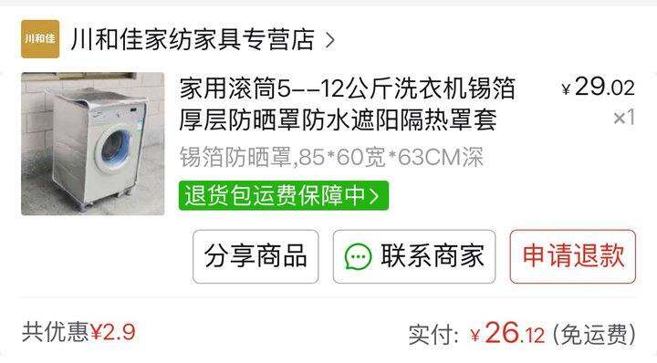 pdd买的,现在淘宝便宜点。洗衣机放阳台,日晒雨淋的,用这个套着挺好的。23年买过一次,最近是有一边拉链那里裂了,还有顶部掉亮闪闪的东西,所以就换新的了。这次的左右上都有双面胶,以前的没有总是拿个洗衣液压在上面。