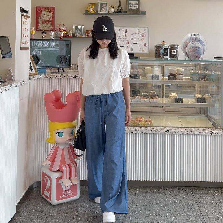 两个色都留了,宽宽的裤腿,居然挺显腰细的,面料不厚,秋天穿