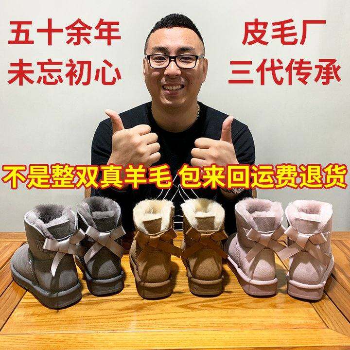 河南桑坡村雪地靴女款羊皮毛一体2024年新款加绒单丝带冬季雪地棉