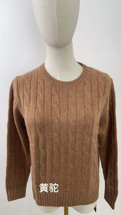 大豆私房2024春秋拉夫款麻花圆领羊绒衫羊毛混纺加厚套头衫24005