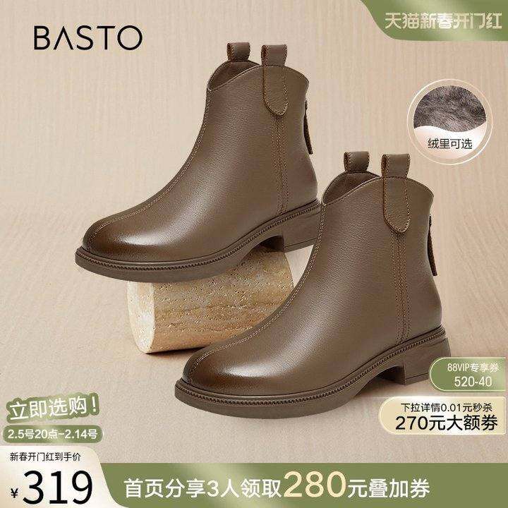 百思图2024冬商场新款美拉德羊皮靴法式小踝靴女加绒短靴G2172DD4
