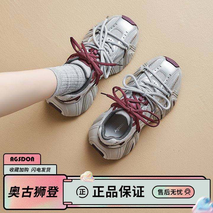 银红色老爹鞋女款2024新款秋冬季加绒厚底增高显脚小运动鞋爆2025