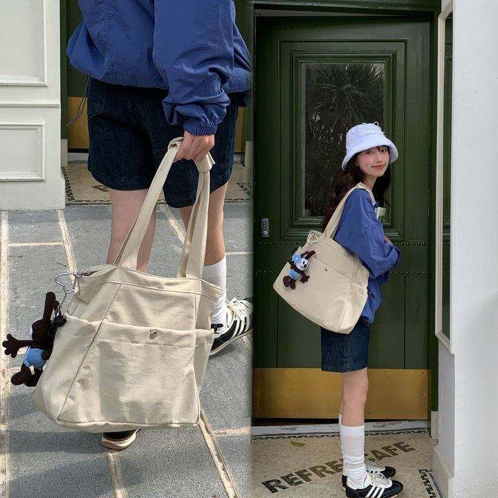 IAC小狗绿自制 多口袋托特包 大容量休闲通勤上课拉链尼龙单肩包