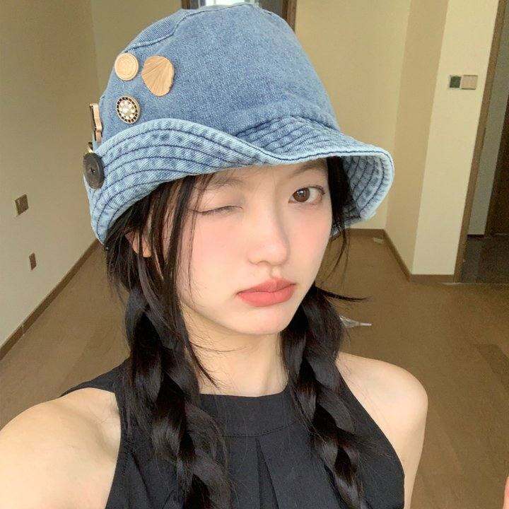 纽扣渔夫帽女秋冬大头围显脸小2023新款盆帽遮阳帽日系户外水桶帽