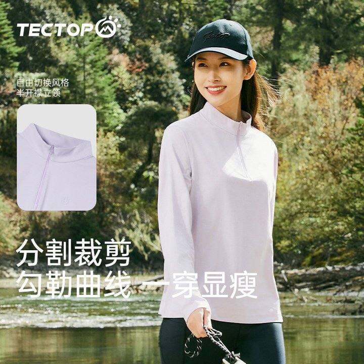 探拓户外长袖速干T恤男春夏新款立领半拉链上衣女登山跑步骑行衣