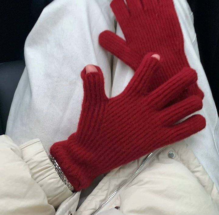AirFactory 韩国东大门 暖心车厘子红 波浪边边 羊毛柔软露指手套