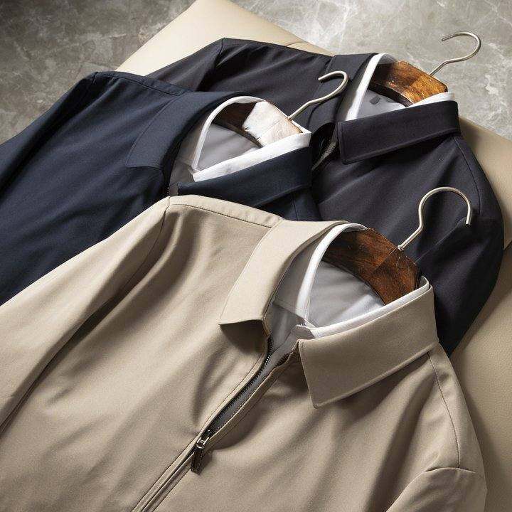 高端质感商务翻领夹克男春秋新品行政外套中年爸爸款抗皱纯色男装