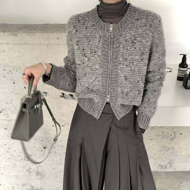 十三行秋冬|ONE TIME2024秋冬上新/彩点复古圆领毛衣开衫OT8866