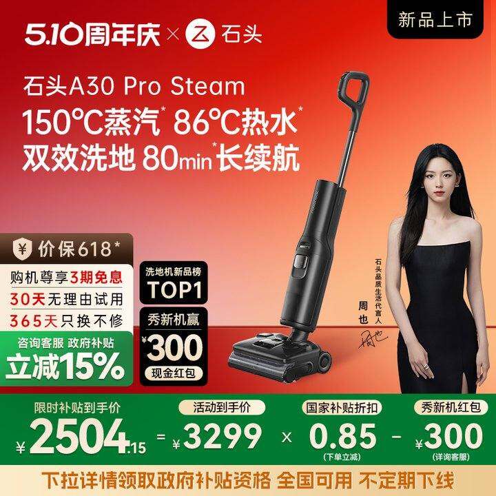 【新品上市-全国15%】石头智能洗地机A30ProSteam蒸汽热水洗地0缠