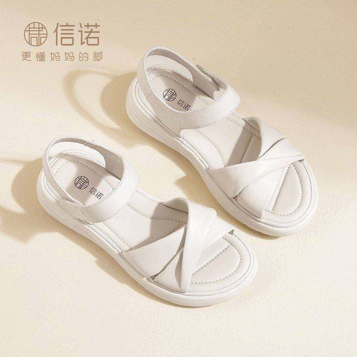 信诺踩屎感凉鞋女外穿2025新款夏季真皮软底休闲平底舒适妈妈鞋子