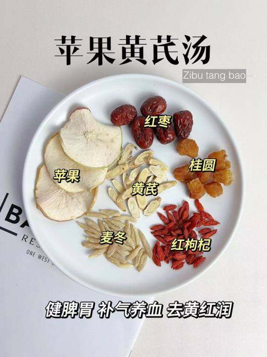 苹果黄芪麦冬红枣枸杞姜枣茶气色暗黄调理女性秋季气血养生茶