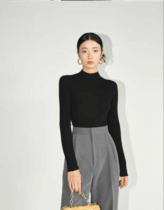 德国杨子纱100%美丽诺羊毛半高领针织衫女内搭长袖百搭显瘦打底衫