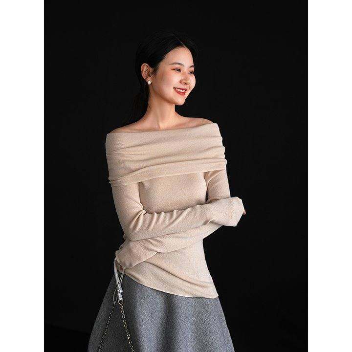 清透云朵触感!莱赛尔/桑蚕丝/温柔拼接一字领针织衫女《QYZF029