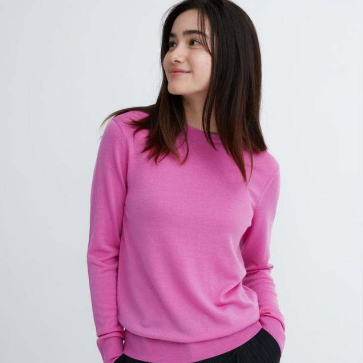 U+美利奴羊毛日单秋冬薄款简约圆领女装针织衫 23267
