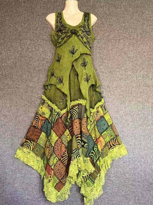 吉万海外购尼泊尔站原版嬉皮士废土风女款手工精灵裙套装专拍连接
