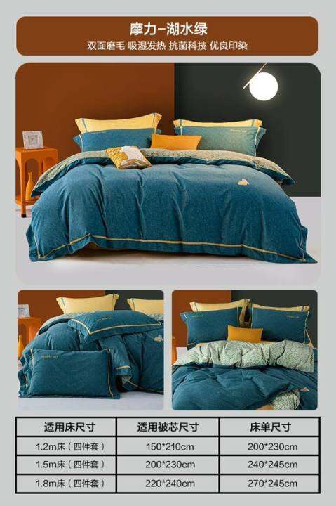水星家纺全棉磨毛四件套纯棉抗菌加厚保暖床品秋冬天床笠床单被套