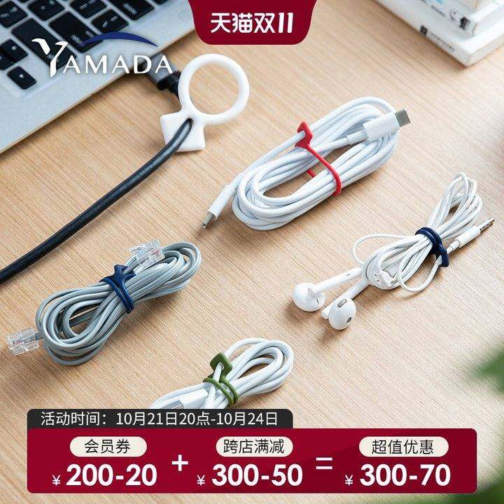 日本YAMADA数据线整理神器耳机线充电线固定器网线绑带整理线圈