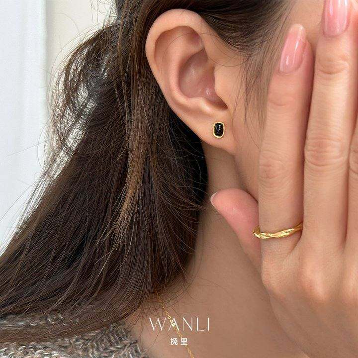 挽里s925纯银黑玛瑙椭圆耳钉轻奢小众设计时尚气质女耳环日常精致