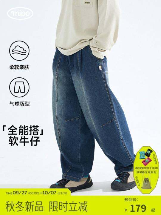【气球裤】mipo秋季儿童牛仔裤女男童柔软蓝色黑色加绒复古裤子