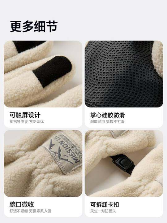 MISSION UV保暖手套女秋冬季骑车户外防风摇粒绒加厚绒面抓绒手套