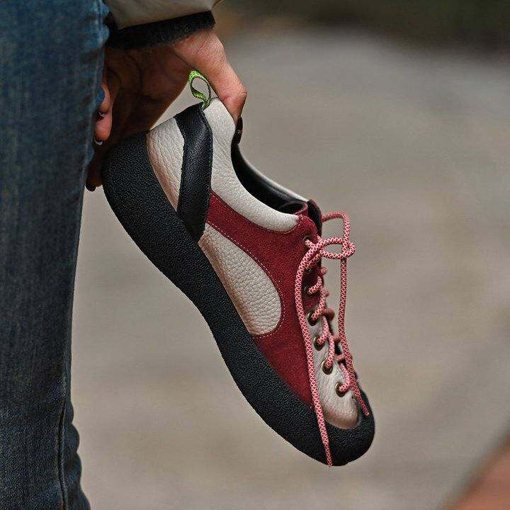 【清仓】何其丑头层牛皮圆头复古拼色系带软底软面舒适时尚休闲鞋