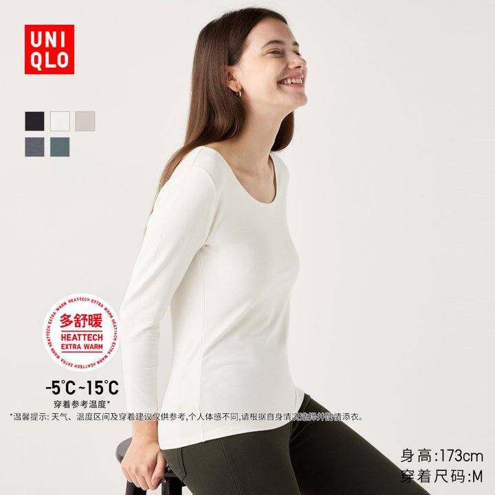 优衣库女装HEATTECH EXTRA WARM棉混纺U领T恤/8分袖秋衣469746