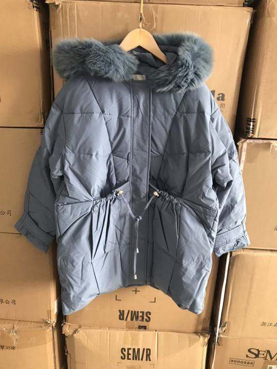 sen系女款狐狸毛领90白鸭绒中长款羽绒服30285