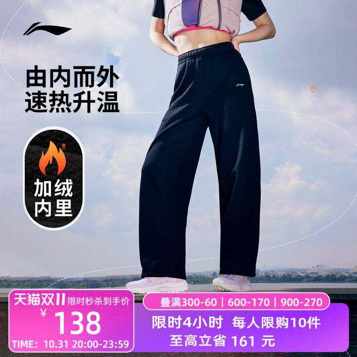 李宁阔腿裤|女秋冬时尚宽松直筒加绒香蕉裤针织卫裤