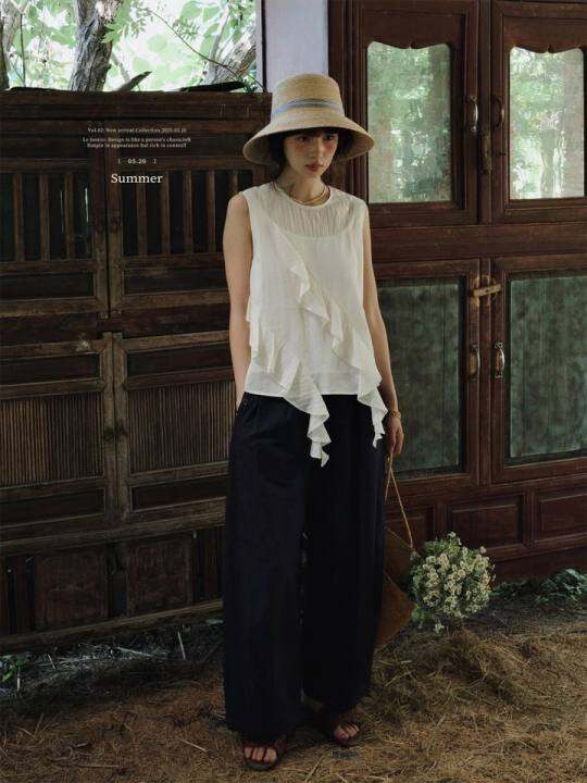 「白描工作间」"夏浔花笺"苎麻长绒棉荷叶拼接背心/衬衫/半身裙