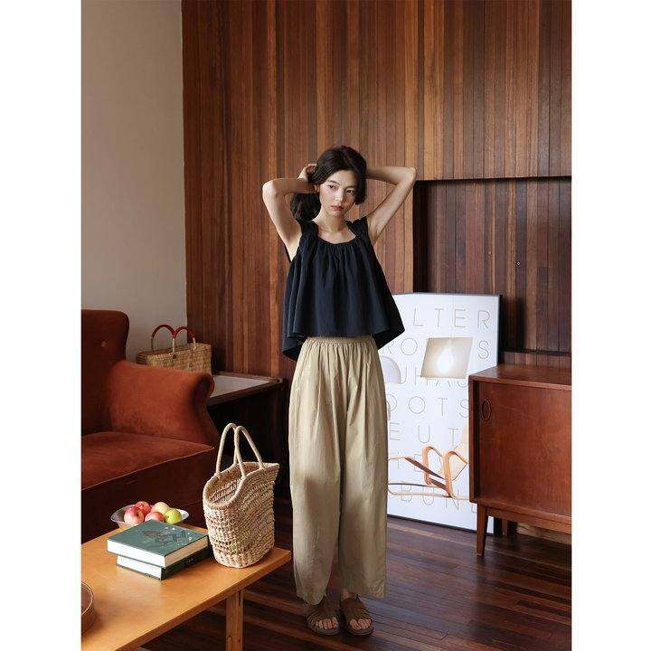 乌龙松茶/日系休闲 小个子裤子女夏季山本裤薄款九分裤直筒阔腿裤