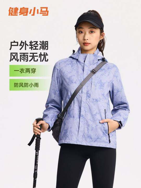 健身小马冲锋衣可拆卸帽宽松户外登山徒步运动防风外套风衣女士