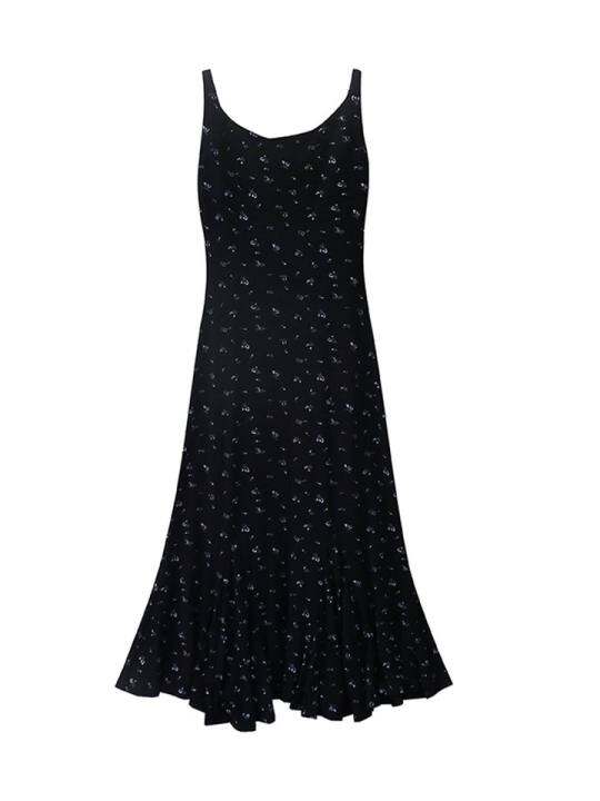 秋季新款法式气质小性感修身显瘦荷叶边小碎花吊带裙连衣裙长裙女