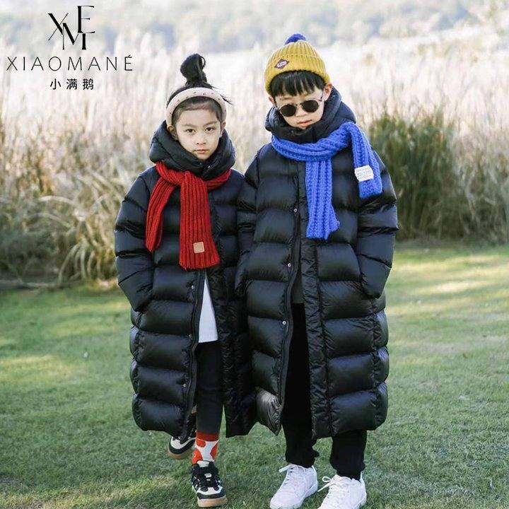 小满鹅新黑科技火山岩快热纱儿童羽绒服中大童保暖中长款加厚外套