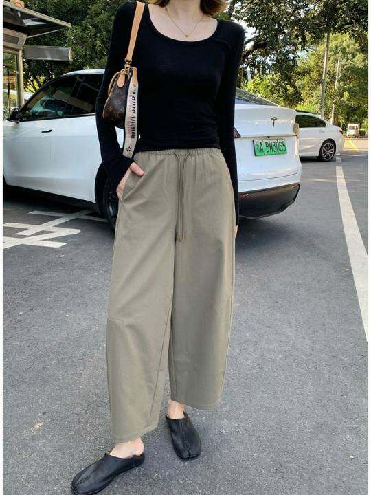 SeaWhen海维恩㊣钛金棉抗皱梧桐裤 秋款松紧腰宽松茧型九分休闲裤