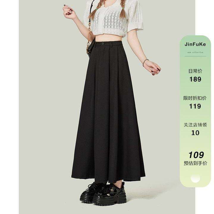 2024夏季新款高腰A字黑色百褶西装半身裙女小个子显瘦大摆伞裙子