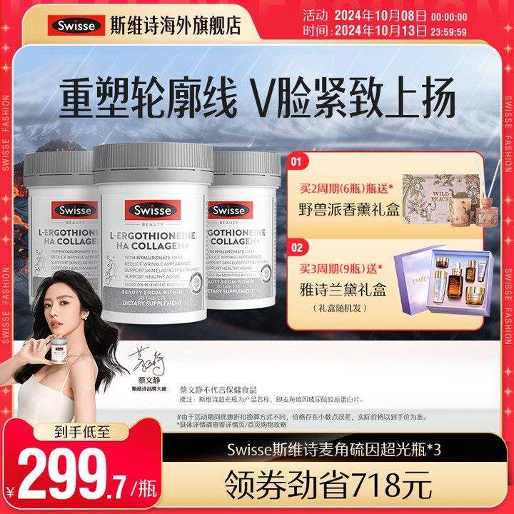 Swisse斯维诗超光瓶麦角硫因胶原蛋白肽玻尿酸维生素口服营养品