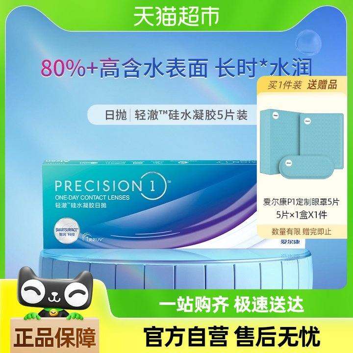 爱尔康硅水凝胶隐形近视眼镜轻澈日抛5片装透明美国进口非月抛
